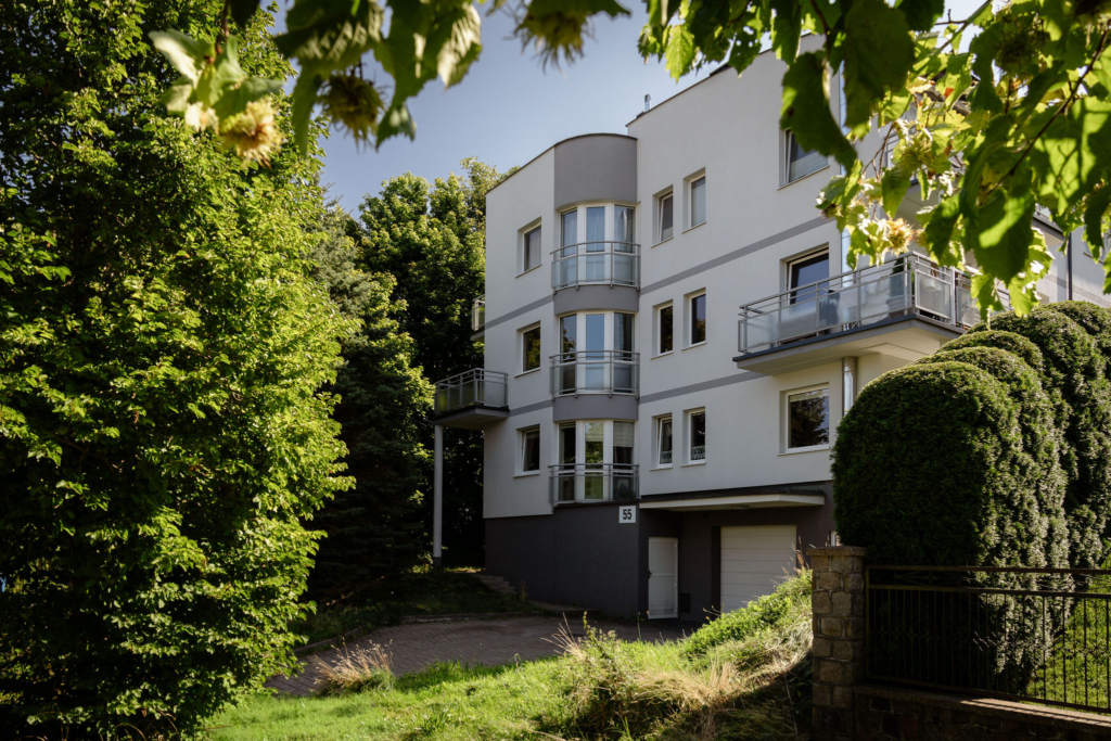 Kamienica Architektów powstała w gdyńskim Orłowie, w urokliwej części miasta, blisko lasu i niespełna 30 minut spacerem od plaży i morza. Architektura budynku, inspirowana modernizmem, jest stonowana i funkcjonalna. Elegancka bryła z jasną elewacją harmonijnie koresponduje z charakterem dzielnicy. Całość otacza zieleń – drzewa, krzewy i żywopłoty – zapewniające poczucie prywatności i spokojną, kameralną atmosferę.