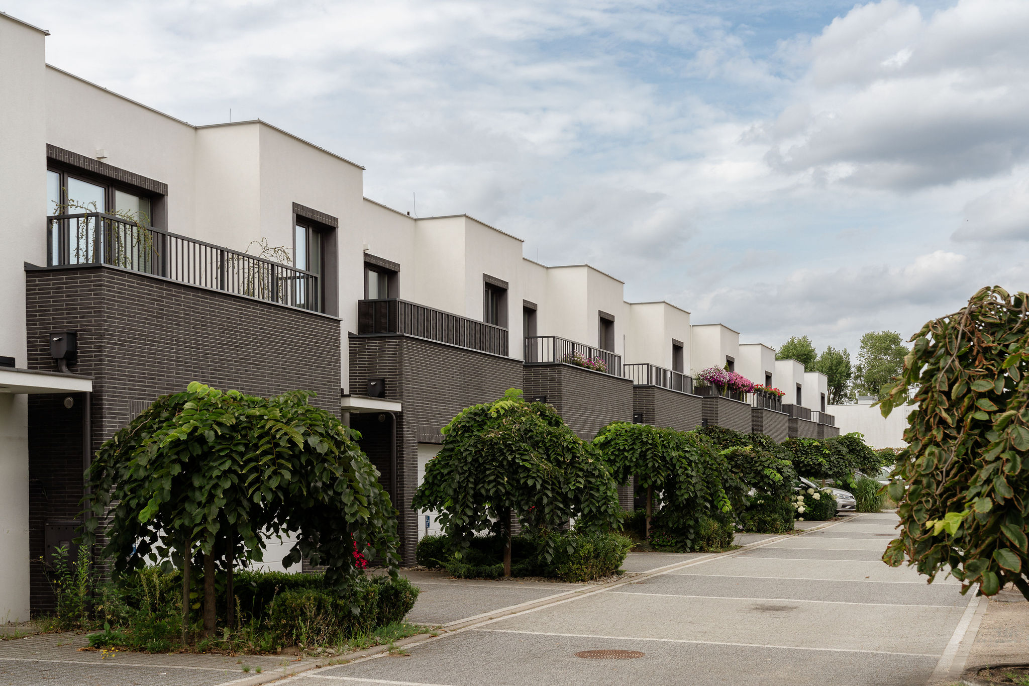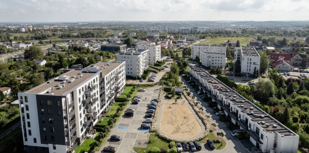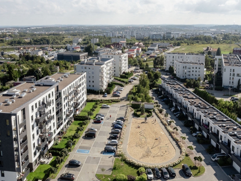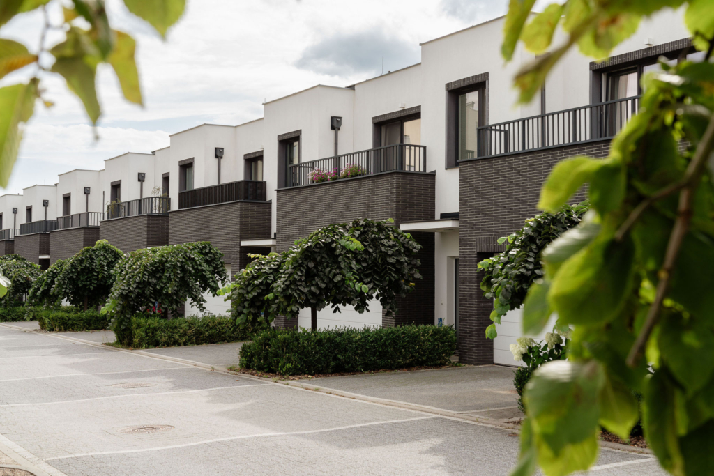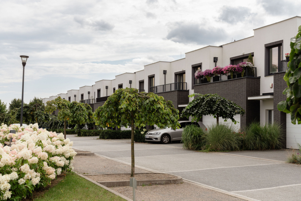 W drugiej części osiedla powstało 13 domów w zabudowie szeregowej. Każdy z nich ma powierzchnię 140 m2, ogródek, a do tego garaż na 2 samochody. Jest to kontynuacja naszego konceptu „Domu w mieście”, a więc domu z dostępem do pełnej infrastruktury miejskiej.