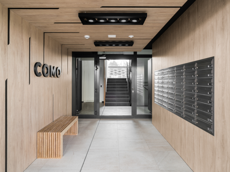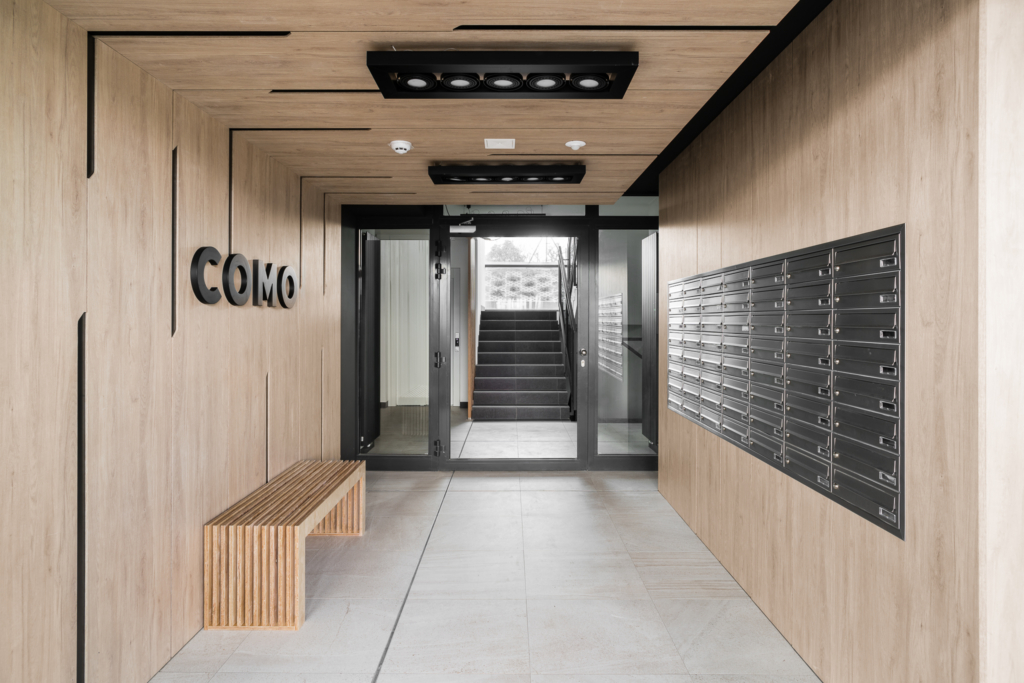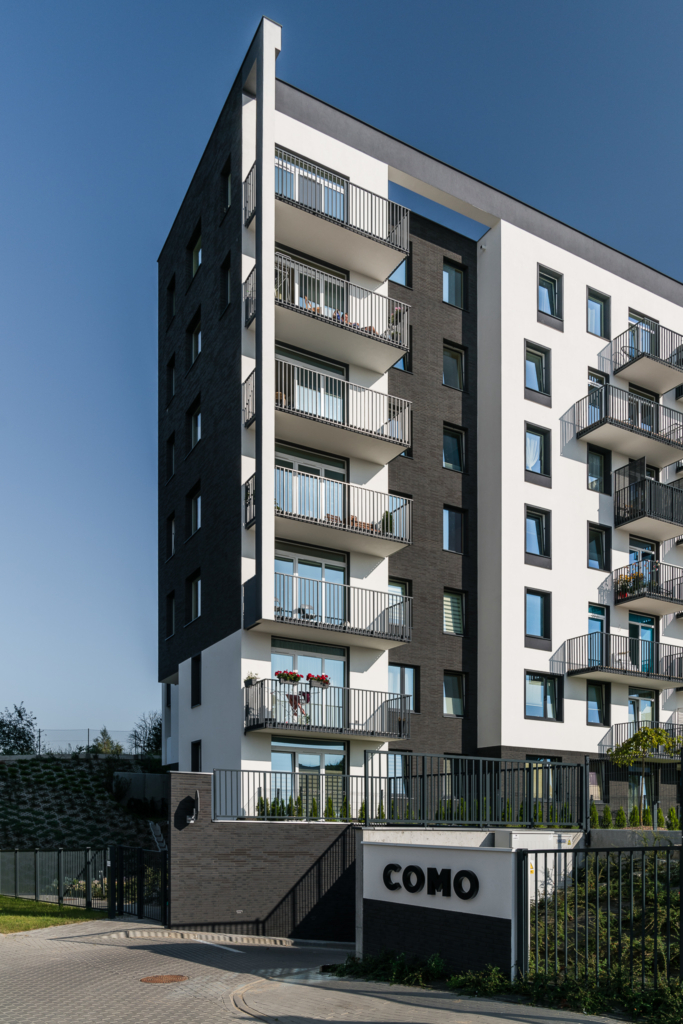 W Como powstało ponad 100 mieszkań od 2- do 5-pokojowych, z balkonami lub ogródkami. Różnorodne metraże i układy pozwoliły znaleźć zarówno kompaktowe mieszkania, jak i przestronne lokale dla większych rodzin. Strefy wejściowe do budynków oraz korytarze zostały zaaranżowane i wykończone z użyciem drewnianych okładzin i charakterystycznych graficznych zdobień. Do dyspozycji mieszkańców są windy, podziemne hale garażowe i miejsca parkingowe na zewnątrz.