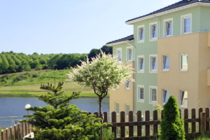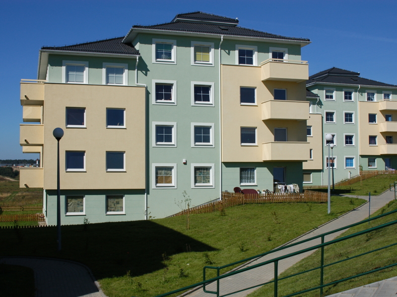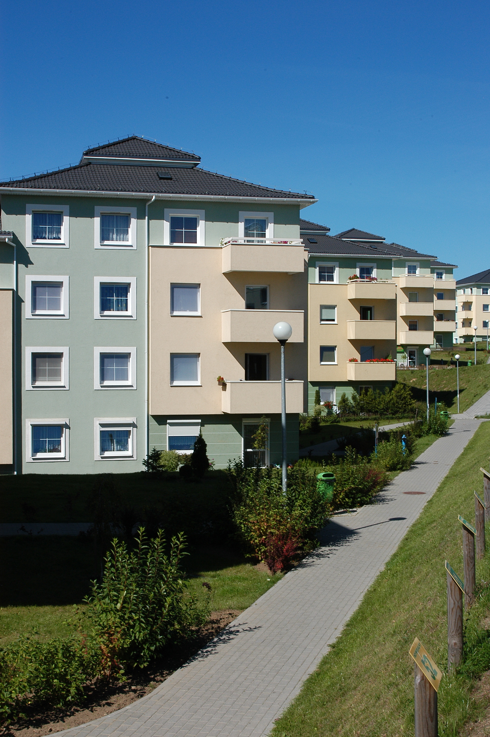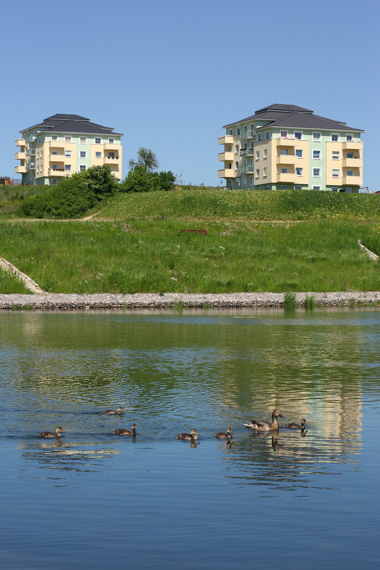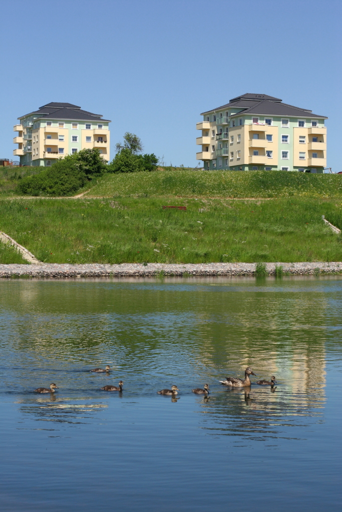 Dzielnica Pięciu Wzgórz powstała w Ujeścisku-Łostowicach, bezpośrednio nad zbiornikiem wodnym Świętokrzyska. Zabudowę tworzą budynki typu Villa Park – kameralne, mieszczące od 16 do 20 mieszkań. Centralnie zaprojektowana klatka schodowa pozwoliła uzyskać więcej mieszkań narożnych, dobrze doświetlonych z dwóch stron. Duże okna otwierają wnętrza na wodę i zieleń, a balkony zaprojektowaliśmy tak, by chroniły prywatność, nie odbierając światła ani widoku. Budynki naturalnie wpisują się pagórkowaty teren, dzięki czemu z wielu mieszkań otwierają się szerokie panoramy na wodę i okoliczną zieleń.