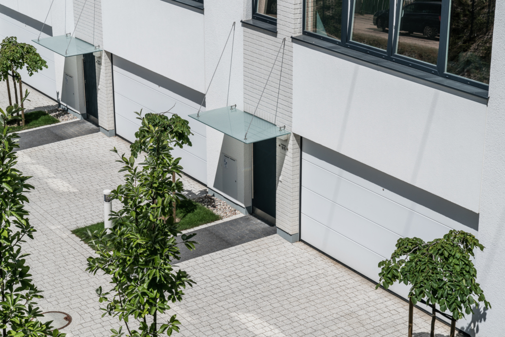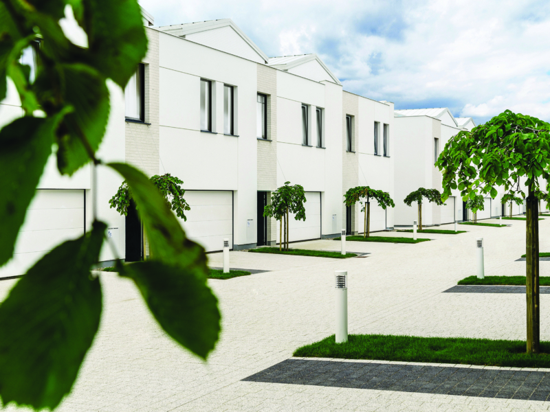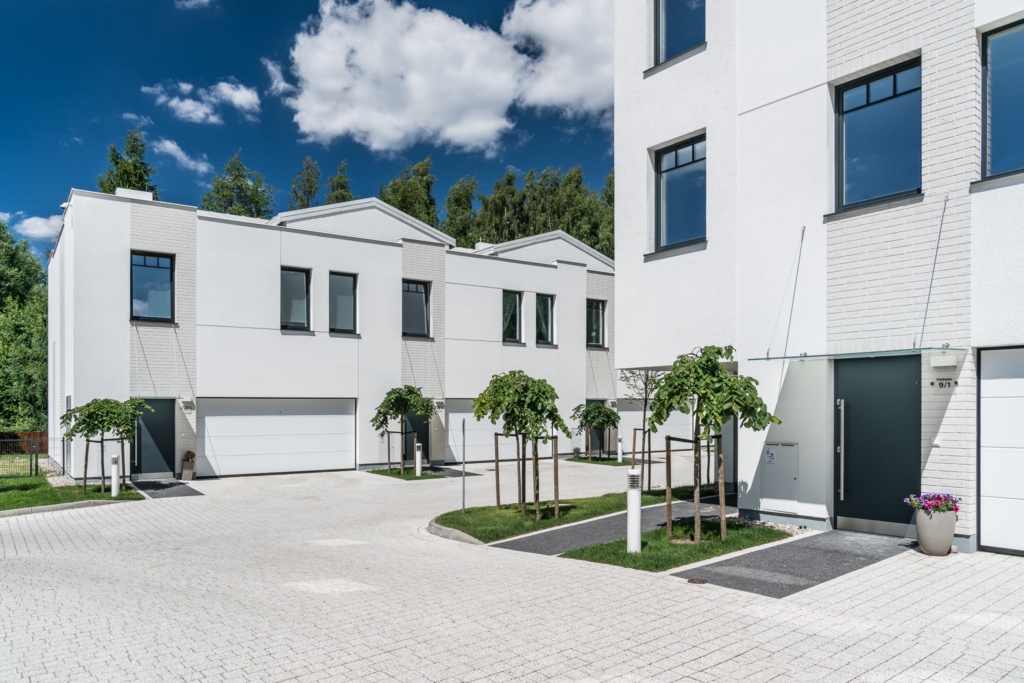 Osiedle wyróżnia biel, elegancja i styl. Architektura jest minimalistyczna, a jednocześnie szykowna. Całość ma w sobie lekkość i porządek. Dominuje biel – od fasad po jasną kostkę brukową na uliczkach. Tworzy to wrażenie czystości i harmonii, które podkreślają starannie dobrane detale: grafitowe drzwi i okna, czy geometryczne podziały elewacji.