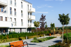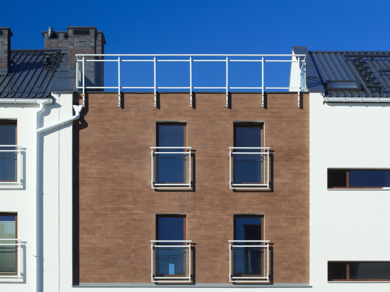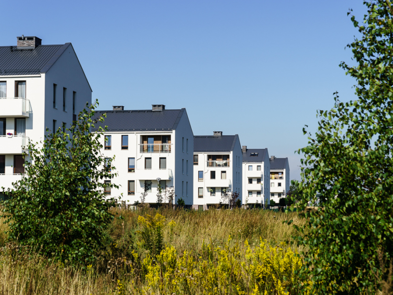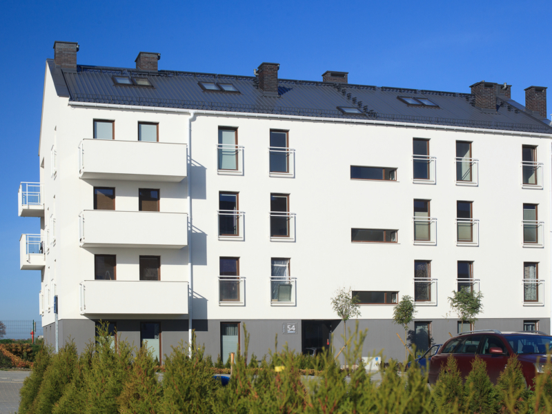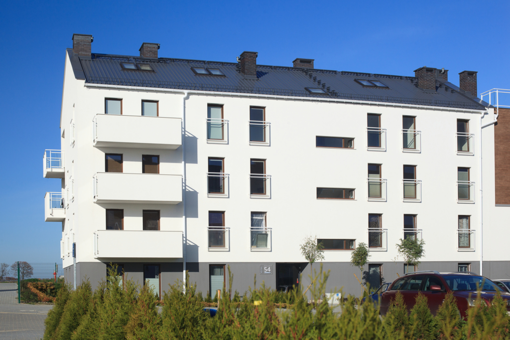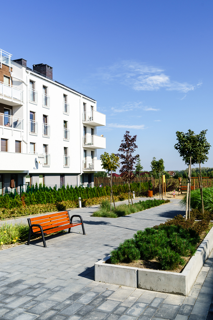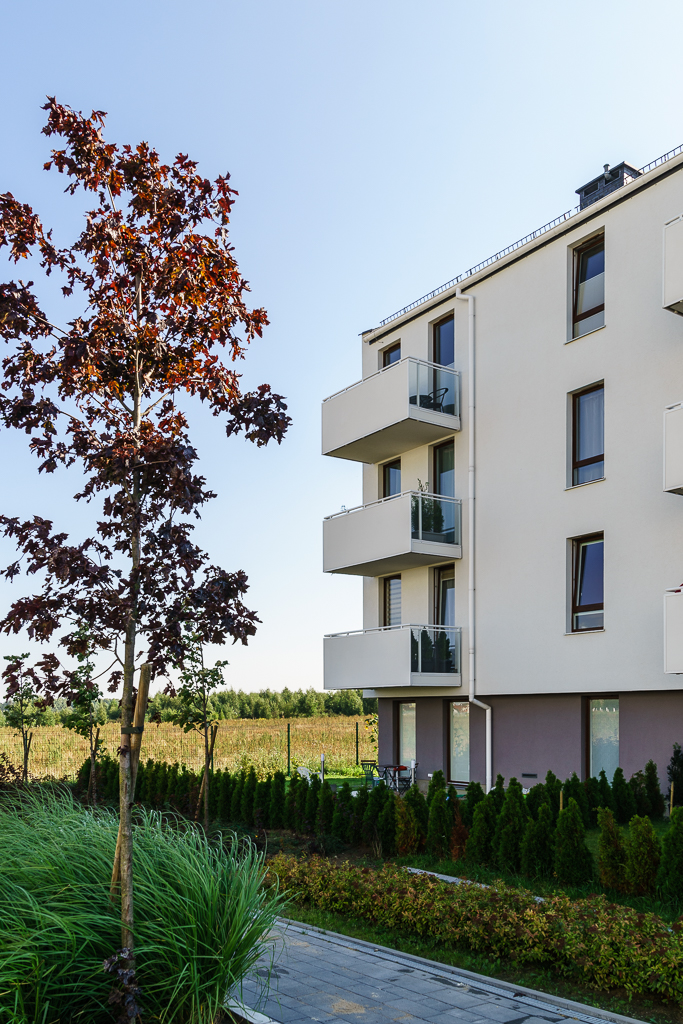 W ramach projektu powstało 10 czterokondygnacyjnych budynków z dwuspadowymi dachami. Architektura osiedla łączy białe elewacje z grafitowymi detalami i elementami w kolorze drewna, tworząc spójną, nowoczesną kompozycję. Przestrzeń między budynkami została starannie zaprojektowana – z zielenią, elementami małej architektury oraz strefami zabaw dla najmłodszych. Teren osiedla jest ogrodzony i wyposażony w miejsca parkingowe dla mieszkańców oraz ich gości.