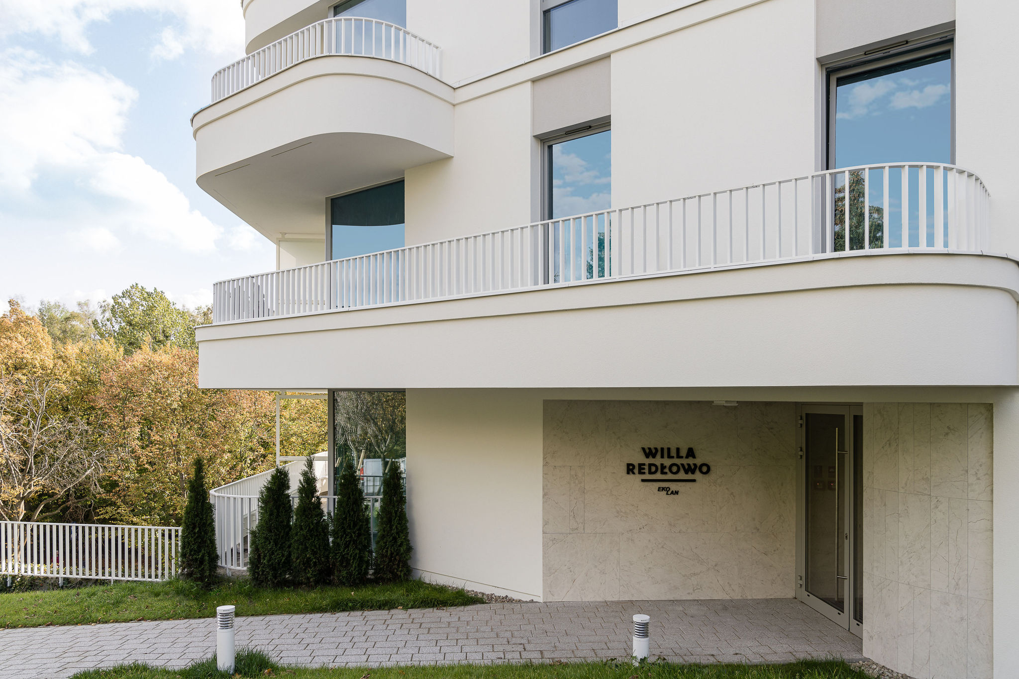 W cenionej gdyńskiej dzielnicy Redłowo powstała elegancka wielorodzinna willa. Blisko centrum, choć na uboczu. Od plaży i morza dzieli ją 800 metrów drogi, która prowadzi lasem Kępy Redłowskiej. Willa Redłowo to współczesna interpretacja gdyńskiego modernizmu. Styl ten przywołują opływowe linie porządkujące formę budynku, charakterystyczne podziały okien na najwyższej kondygnacji oraz biel elewacji. Wnętrza - jasne, przestronne tchną spokojem i konsekwentnie zachowują ducha modernizmu. Uwagę zwracają grafiki trójmiejskiej projektantki, Zuzy Gadomskiej, autorki cyklu „Gdynia in Monochrome” - prezentujące ikoniczne budynki gdyńskiego modernizmu, ukazane w czystej rzeźbiarskiej formie.